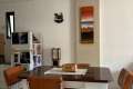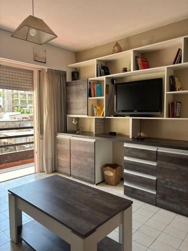 El apart cuenta con un living comedor amplio y luminoso, con mesa y sillas, sillón confortable y salida a balcón, generando un ambiente funcional y agradable. El espacio integrado brinda buena ventilación natural y se encuentra equipado con aire acondicionado, ideal para una estadía confortable durante todo el año.