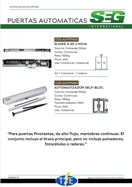 Tecnología eléctrica es una empresa donde brindamos servicios de comercialización, instalación y automatización de puertas automáticas, portones corredizos, levadizos y pivotantes. Además comercializamos insumos, repuestos y accesorios.