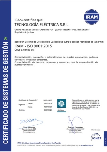 Certificados IRAM Iso 9001.